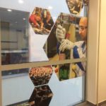 A folyamat a következő volt. Itt készen kaptuk a grafikát, be kellett szerkesztenünk a hatszögeket, majd Caldera-ban berippeltük a nyomdakész pdf-eket, és a HP FB700 UV tábla és tekercses nyomtatónkkal kinyomtuk tapétára illetve vinylre. Utána vágóploterrel kontúr vágtuk az anyagokat, és összekészítettük a dekoráláshoz.