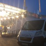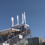 A 3×3-ra is kellett molinót, textilt (zászló), táblát (habosított PVC), roll-up filmet, vinylt (öntapadós nyomatok) nyomni, amire az UV nyomtatónkat használtuk. Ezeket konfekcionálni kellett: hegeszteni, varrni, vágni, amire mindre megvan a célgépünk. Szerkezeteket kellett biztosítani: a roll-upokat tartjuk raktárban, az óriás display szerkezetét, aminek mobilnak kellett lennie és hatalmasnak (5 x 3 méter), mi terveztük és a műhelyünkben hegesztettük, fúratoltuk, szereltük hajnalban, hogy másnap reggel a sajtókonferencián díszelegjen. A dekor elemeket reggel kihelyeztük, napközben átszereltük, este beszedtük.
