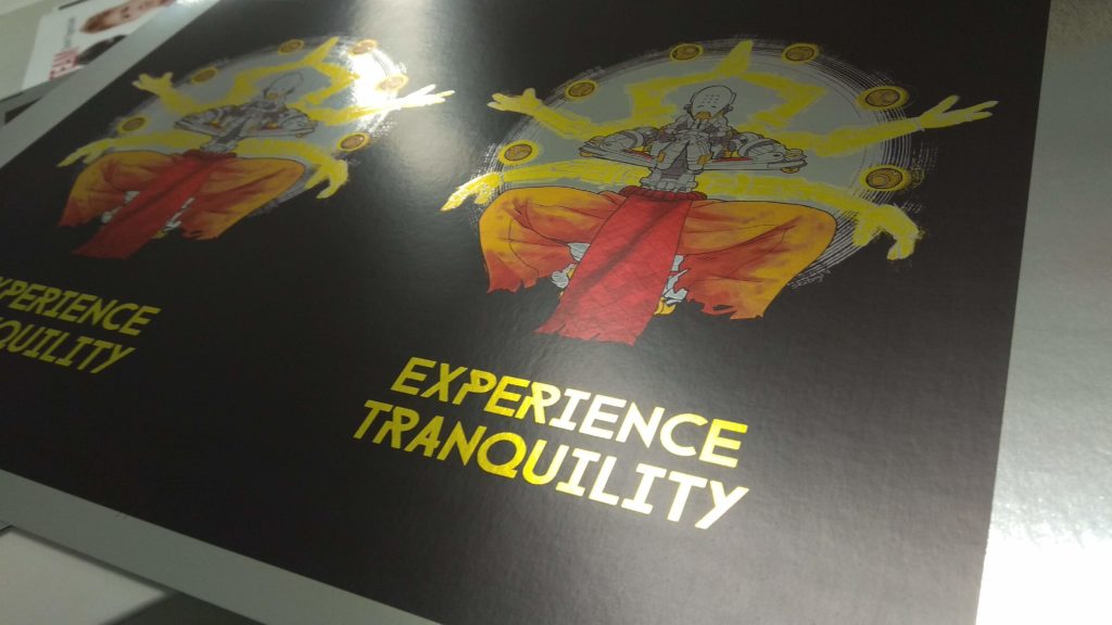 A cégünknél dolgozik egy lány, Dorka. Dorka imád rajzolni. Ritkán jár a nyomdagépek közelében, de azért tisztában van a technológiákkal, így az ezüst nyomtatással is. Idén elhatározta, hogy egy barátnőjével együtt kiállítanak a MondoCon rendezvényen, ahol elkezdik árusítani a saját rajzaikat. Hogy igazán ütősek legyenek ezek a rajzok, tényleg unikum a többi között, kipróbáltuk az ezüst nyomtatást ebben az esetben is… és…. szerintem nagyon jók lettek! Amikor megláttam az első nyomatokat elakadt a lélegzetem, hogy mennyire jól kihozza a színeket és milyen jól felturbózza ezt a művészeti stílust.