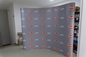 Ez elég nagyra sikerült. Az előterünkben állítottuk fel, ott is alig fért el. 390 cm széles és 225 cm magas íves pop-up, háttérfal. Vagy szokták…